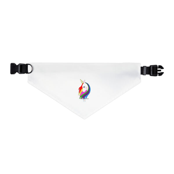 The pet bandana collar puts a fun spin on standard animal accessories. It is made of polyester duck fabric and is sublimation printable on one side. The bandana collar is available in four sizes to fit any pet. The construction and printing is durable enough for machine washing. The collar fastening helps to keep the bandana fitting correctly, even during play.