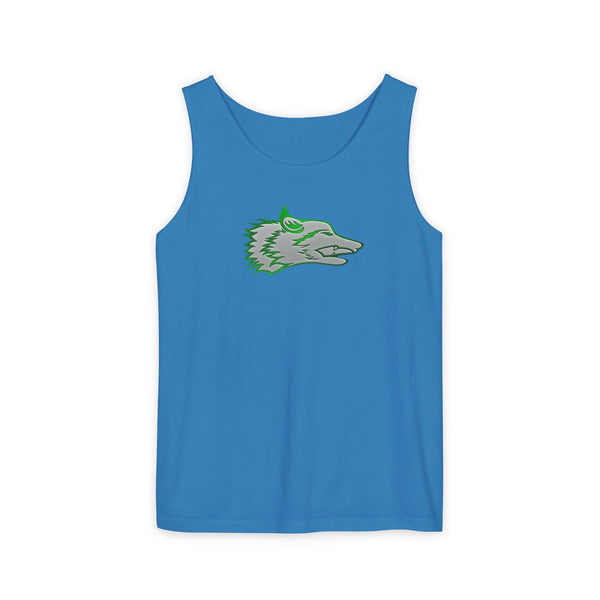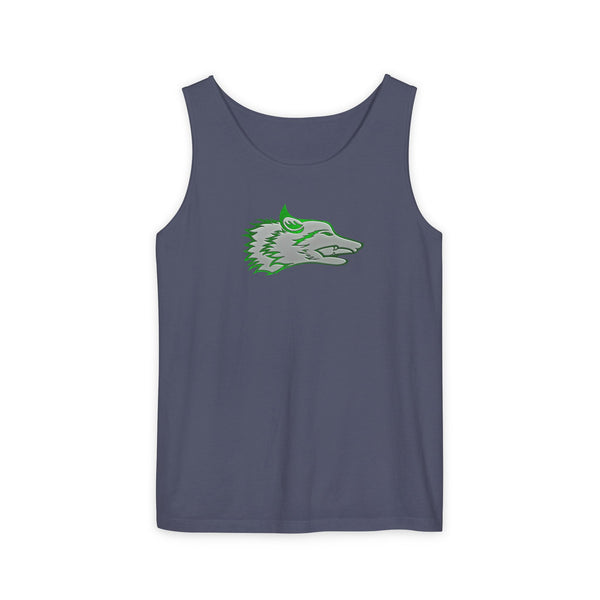 The Wolf was drawn for the founders goddaughter, Talia Mazurek (age 7). She loves wolves, green and Minecraft! This designs represents all three of them!
