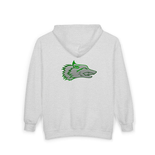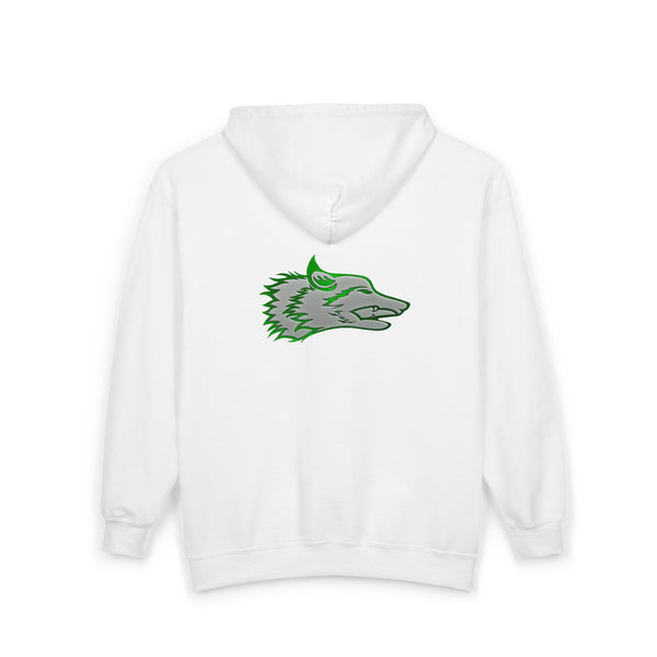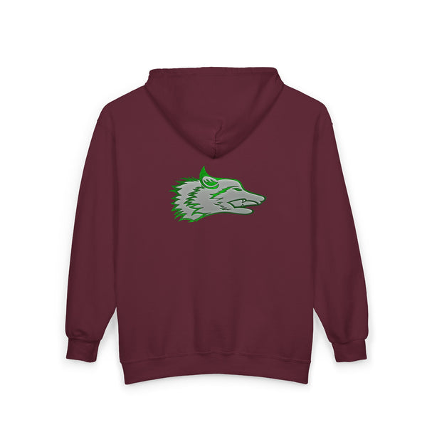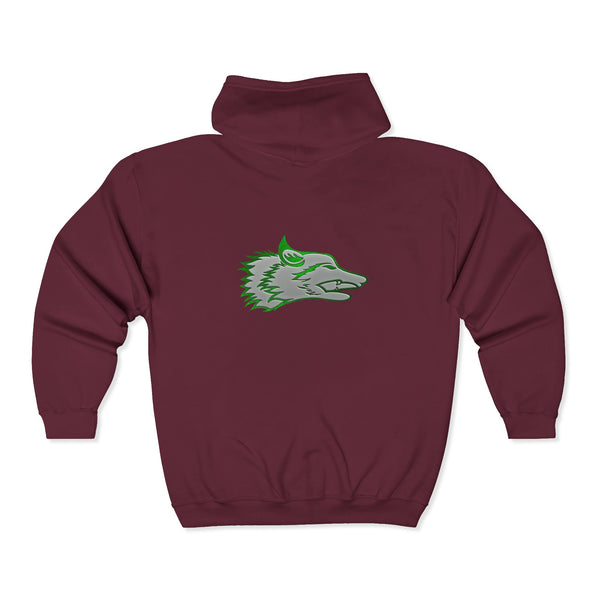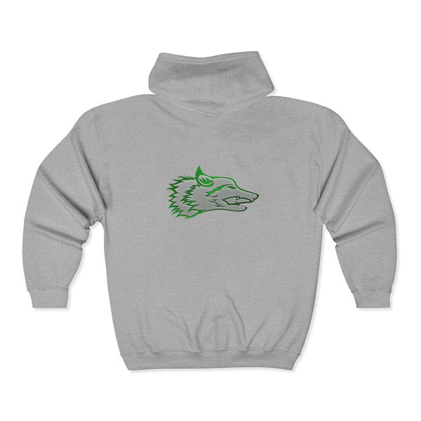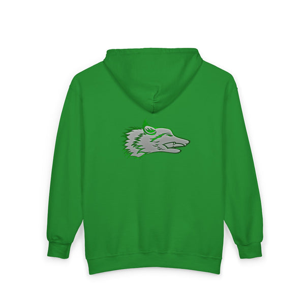 The Wolf was drawn for the founders goddaughter, Talia Mazurek (age 7). She loves wolves, green and Minecraft! This designs represents all three of them!