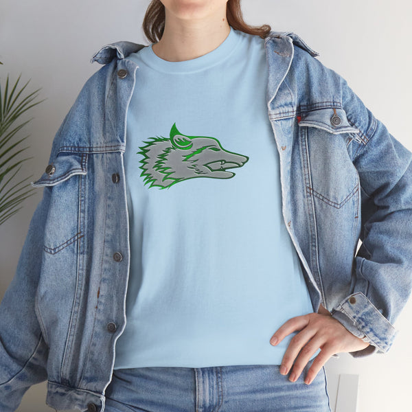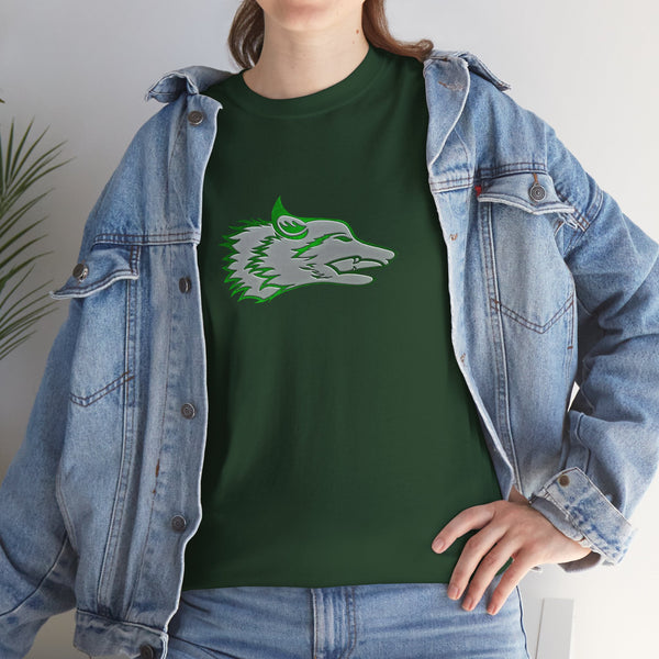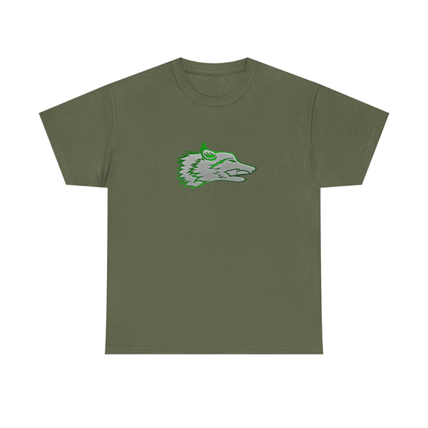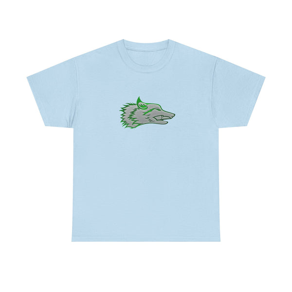 The Wolf was drawn for the founders goddaughter, Talia Mazurek (age 7). She loves wolves, green and Minecraft! This designs represents all three of them!